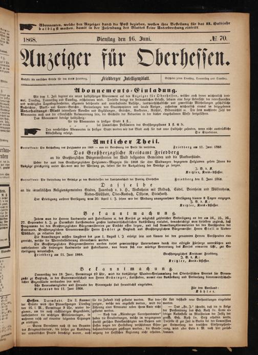 Friedberg den 8. Juni 1868.
