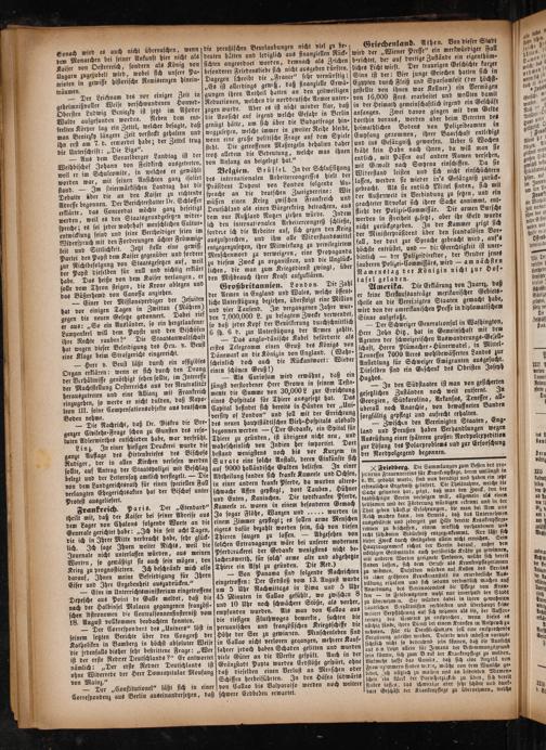 Frankreich. Paris. Der„Etendard“ theilt mit, daß der Kaiser bei seiner Abreise aus dem Lager von Chalons folgende Worte an die Generale gerichtet habe:„Ich bin seit acht Tagen, die ich in Ihrer Mitte verbracht habe, sehr glück⸗ lich. Ich sage Ihnen weiter Nichts, weil die Journale nicht unterlassen würden, aus meinen Worten, so gemäßigt sie auch sein mögen, den Krieg zu prognosticiren. Ich beschränke mich also darauf, Ihnen meine Befriedigung für Ihren Eifer und Ihre Ergebenheit auszudrücken.“
