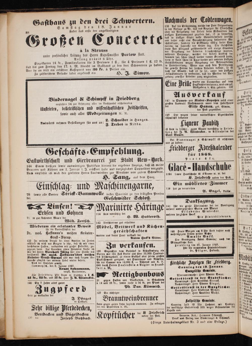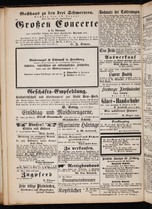 Wittagslkirche statt. 7 Friedberg den 17. Januar 1868. Für die trauernden Piuterbliebenen: Dr. Pilger, Hofrath.