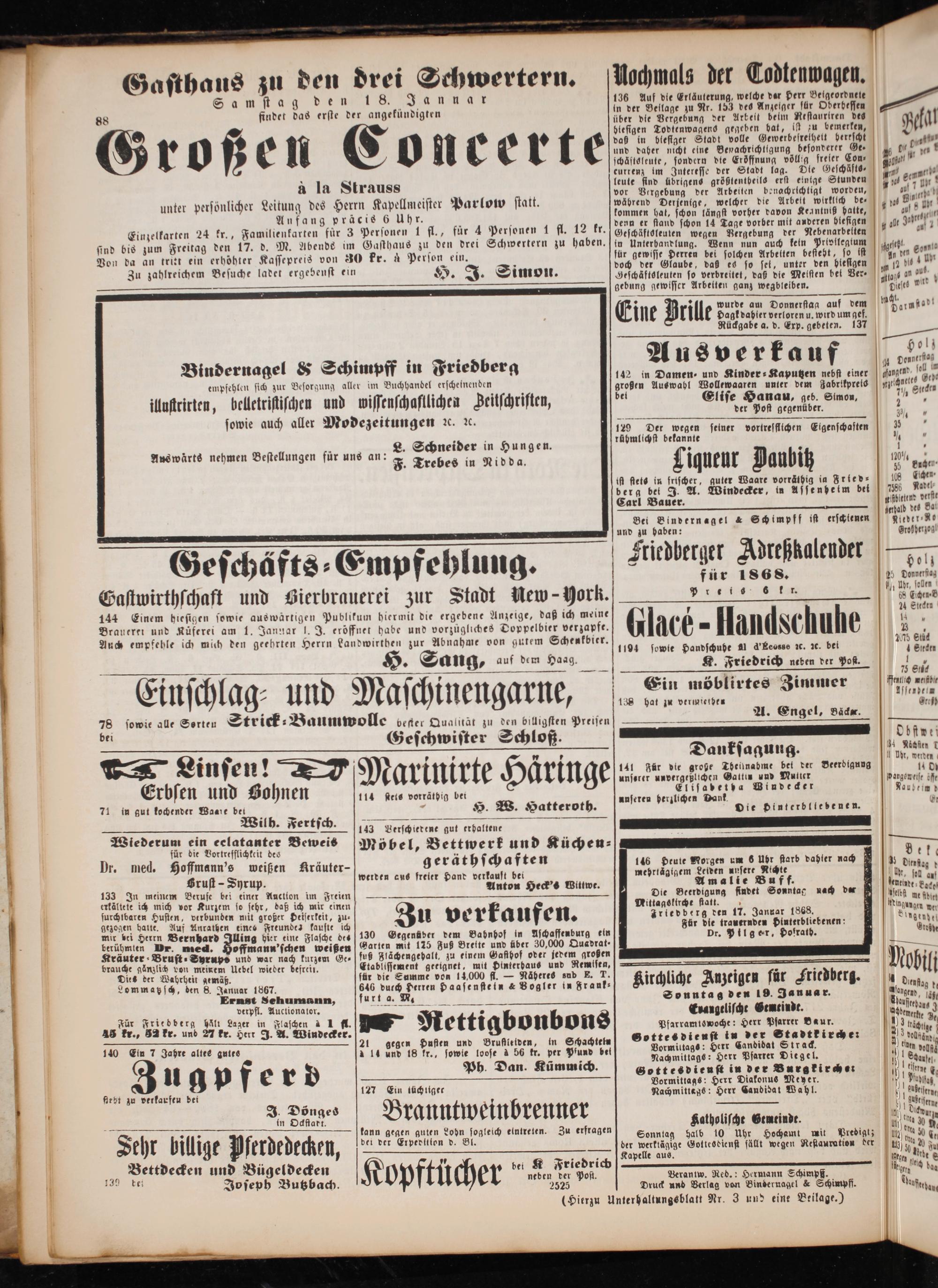Verantw. Red.: Hermann Schimpff. Druck und Berlag von Bindernagel& Schimpff.