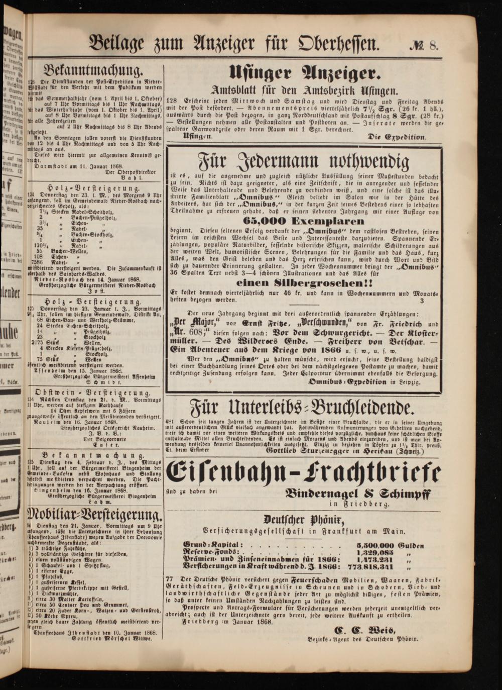Wer den„Omnibus“ zu halten wünscht, wird ersucht, seine Bestellung baldigst bei einer Buchhandlung seines Ortes oder bei dem nächstgelegenen Postamte zu machen, damit rechtzeitige Zusendung erfolgen kann. Jeder Cclporteur übernimmt ebenfalls die Besorgung.