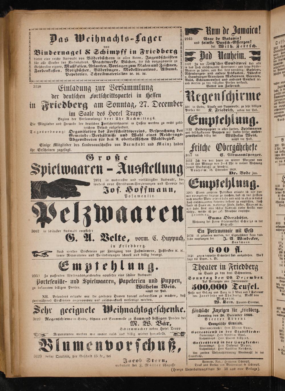 zu Unterhaltungsblatt Nr 51 und eine Beilage).