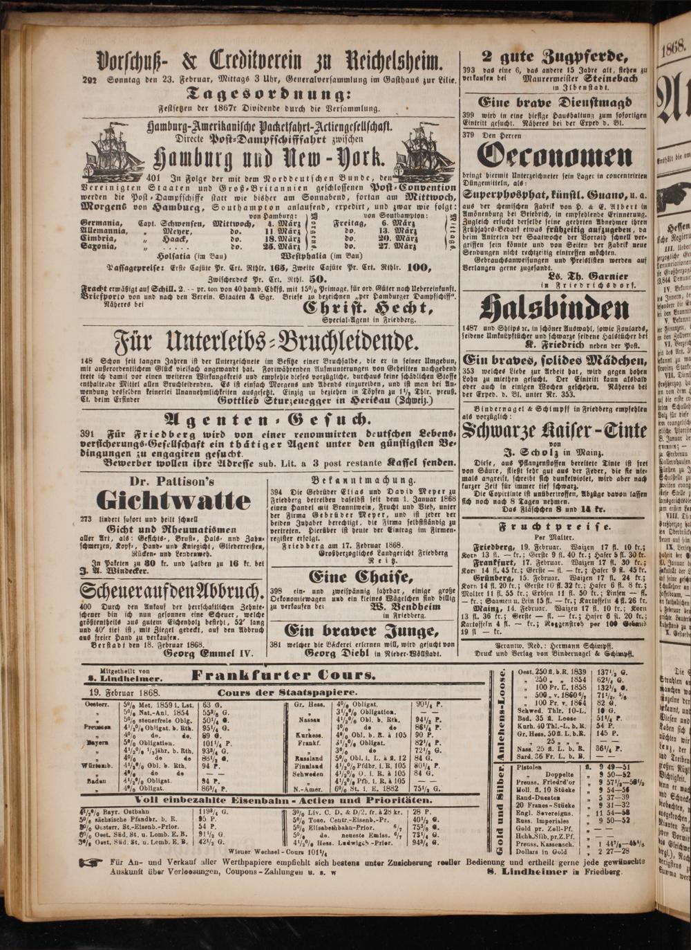 Tagesordnung: Festsetzen der 1867r Dividende durch die Versammlung.