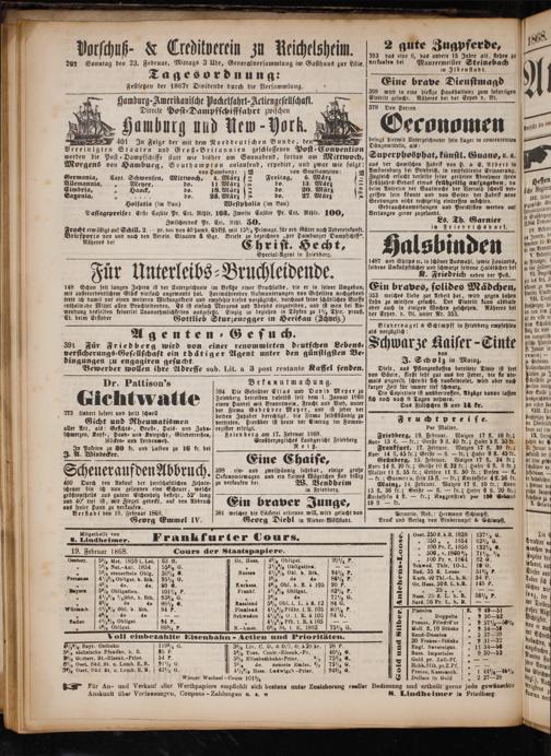 Agenten ⸗Gesuch. 391 Für Friedberg wird von einer renommirten deutschen Lebens, versicherungs⸗Gesellschaft ein thätiger Agent unter den günstigsten Be⸗