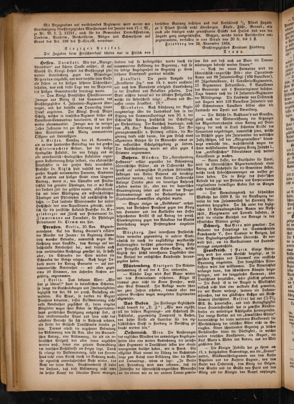 Zugabe ganz ausgeschlossen. gegenhandeln, verfallen in eine Strafe von 30 kr. bis 2 fl. Friedberg den 20. November 1868.