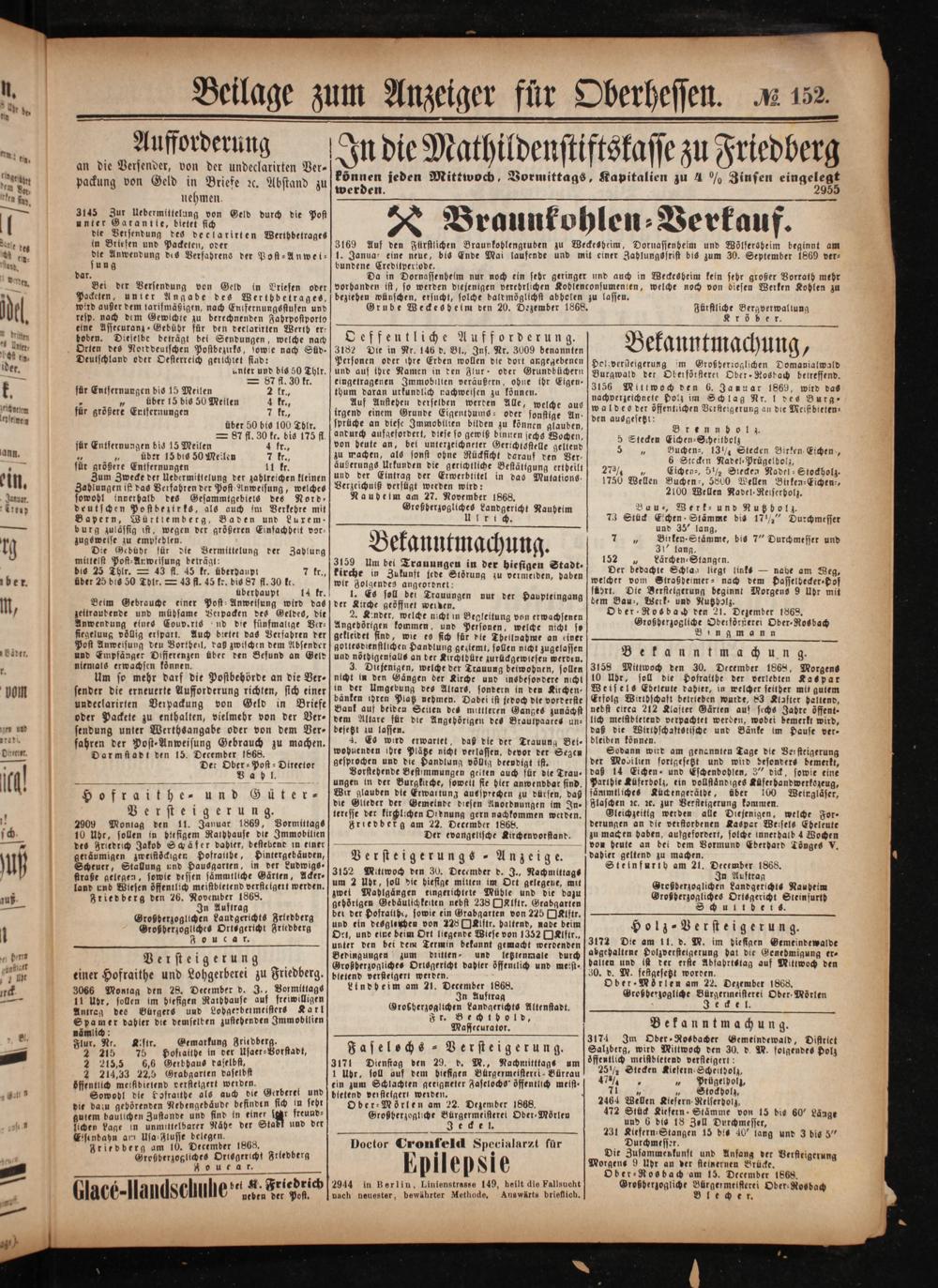 Beilage zum Anzeiger für Oberhessen. 1 152