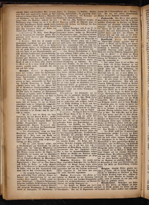 Frankreich. Paris. Der Behauptung der„Spener'schen Zeitung“ gegenüber stellt die „Patrie“ in Abrede, daß der König von Hanno ver bezüglich der Aufnahme der hannover'schen Flüchtlinge in Frankreich eine Anfrage an die französische Regierung vorher gerichtet habe. Wenn eine derartige Eröffnung stattgefunden hätte — sagt die„Patrie“— so würde der König die Ueberzeugung gewonnen haben, daß die Aus- führung des Vorhabens der französischen Regi e⸗ rung sehr unangenehm sei.