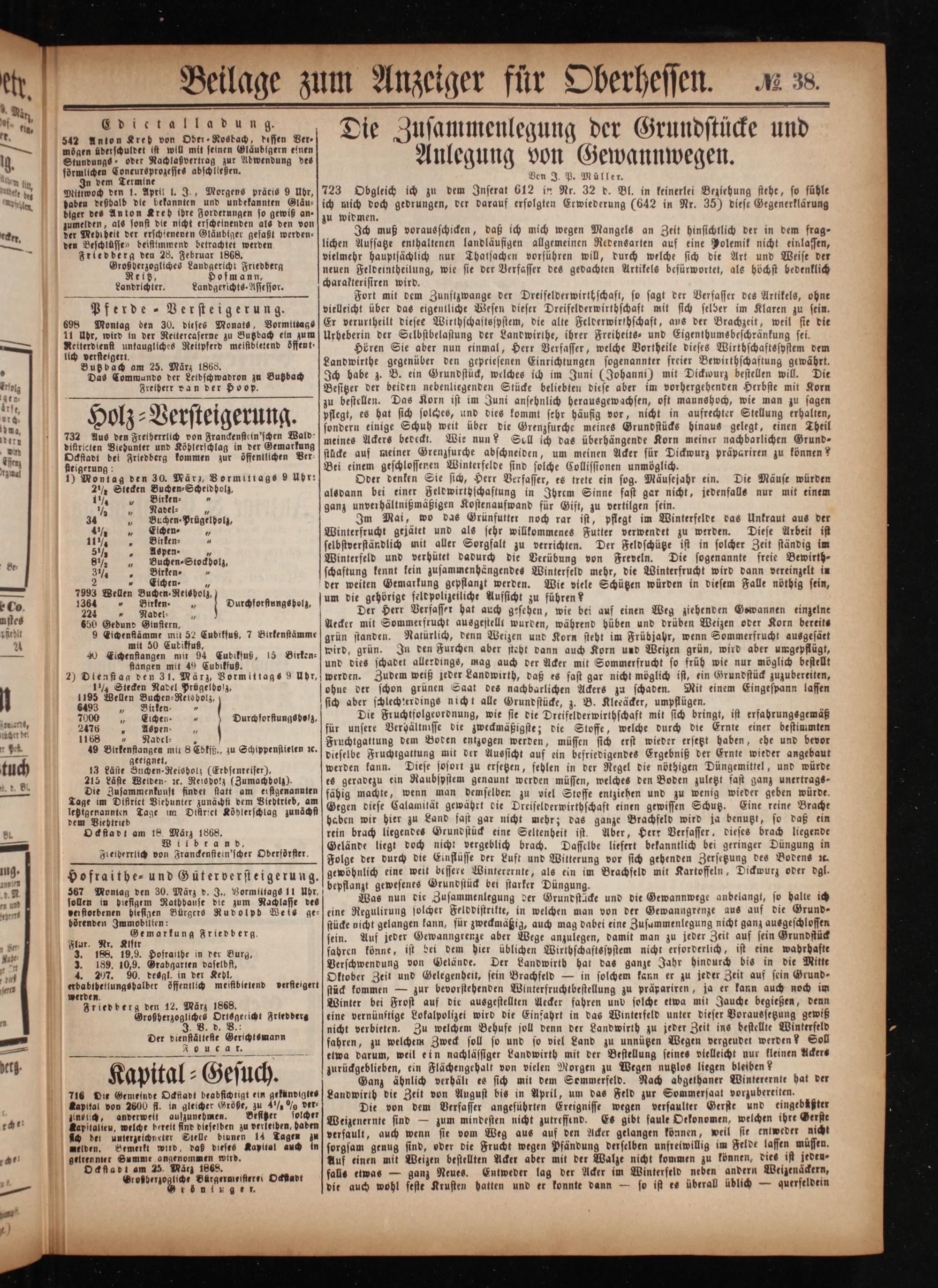 b Beilage zum Anzeiger für Oberhessen.