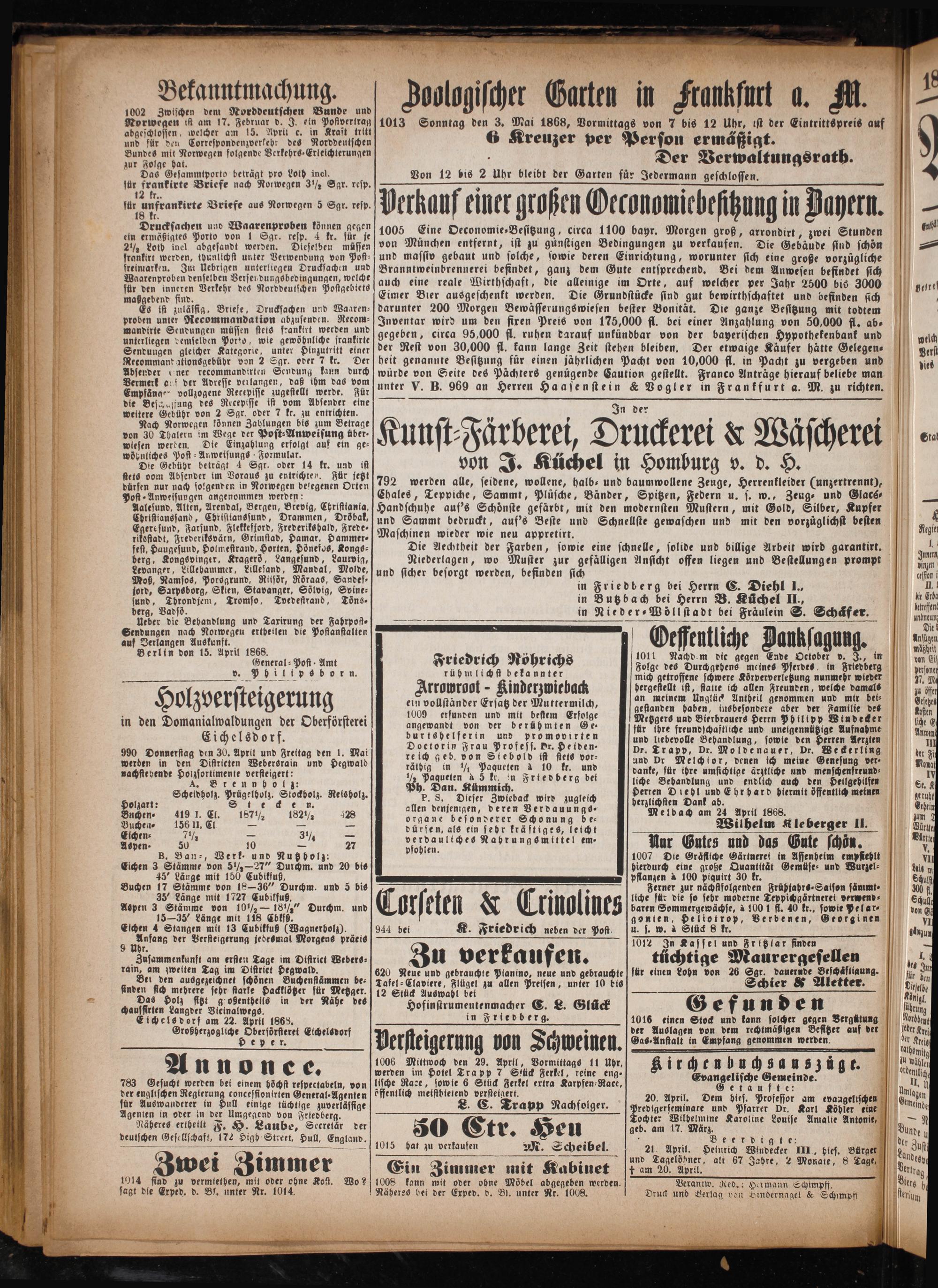 1013 Sonntag den 3. Mai 1868, Vormittags von 7 bis 12 Uhr, ist der Eintrittspreis auf 6 Kreuzer per Person ermäßigt. a Der Verwaltungsrath.
