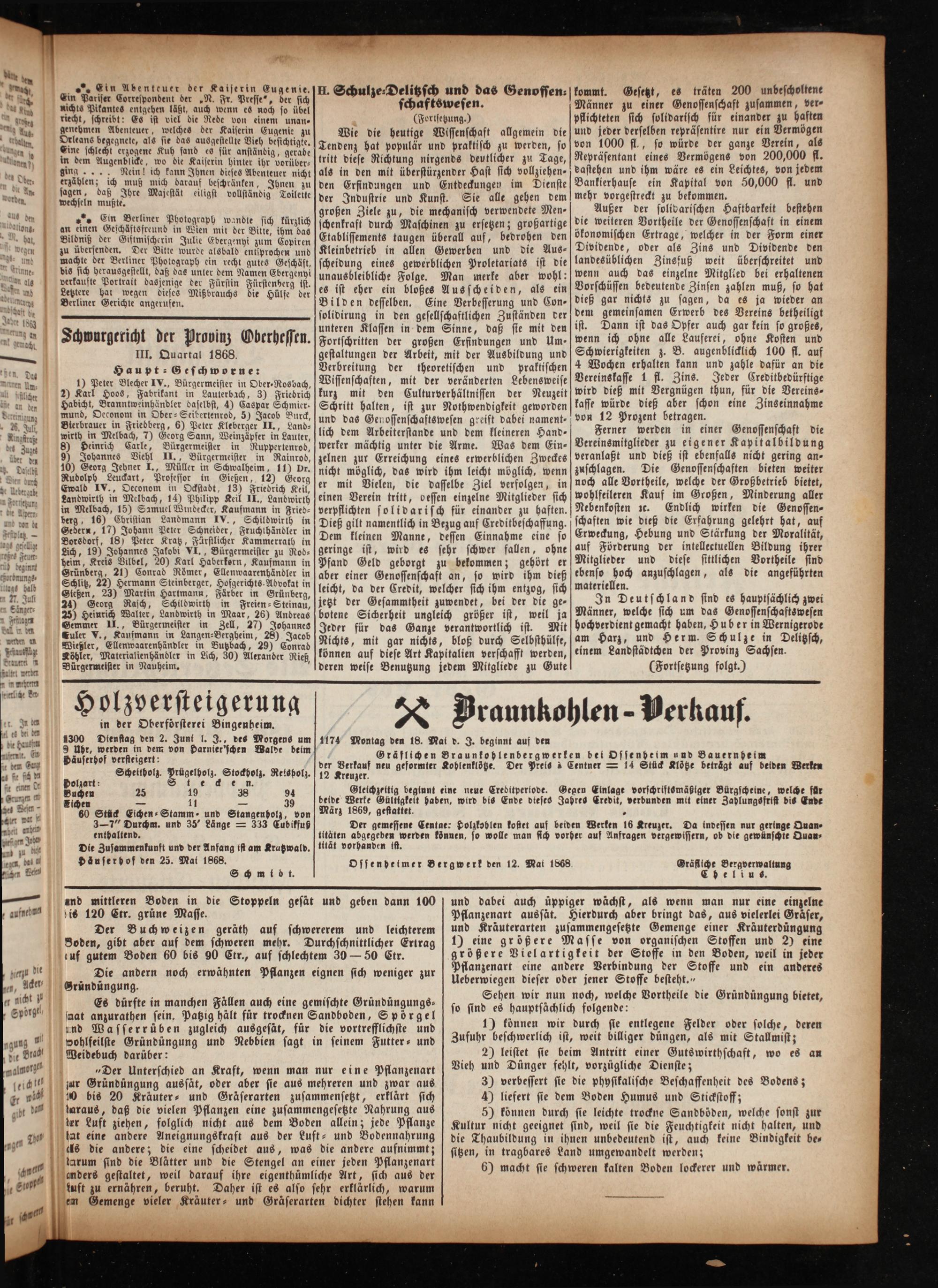 In Deutschland sind es hauptsächlich zwei Männer, welche sich um das Genossenschaftswesen hochverdient gemacht haben, Huber in Wernigerode am Harz, und Herm. Schulze in Delitzsch, einem Landstädtchen der Provinz Sachsen.