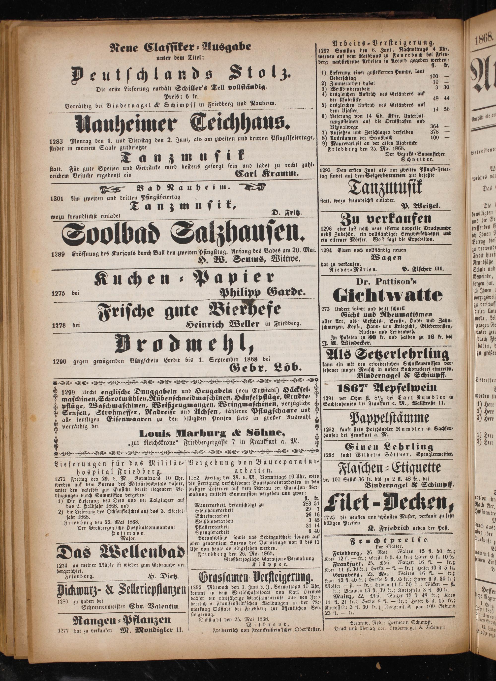 Friedberg den 25. Mal 1868. Der Bezirks⸗Bauausseher Schneider.