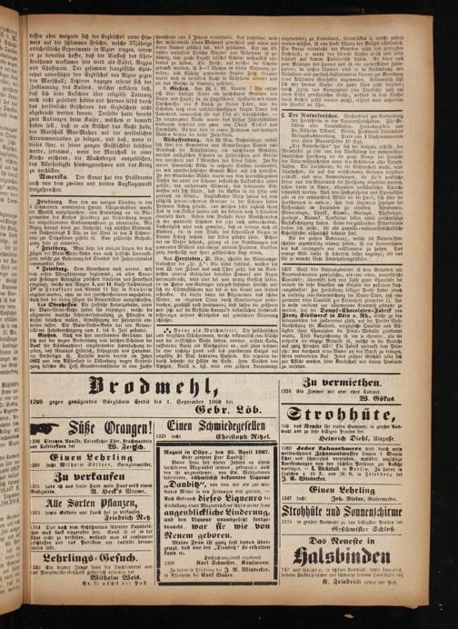 Gießen. Nach den hier coursirenden Gerüchten hat sich aus der wegen Verbreitung von falschen Scheinen der Bank für Süddeuschland eingeleitenden Untersuchung er⸗ geben, daß Nicolaus Hillerich, Lithograph aus Hadamar, der Verfertiger ist. Derselbe wurde bereits im Jahre 1862 von dem Assisenhofe in Dillenburg wegen Verferti⸗ gung falscher Gr. Hess. Grundrentenscheine in eine Zucht-