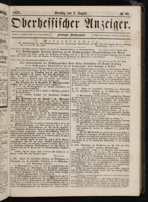 Friedberg den 1. August 1870.