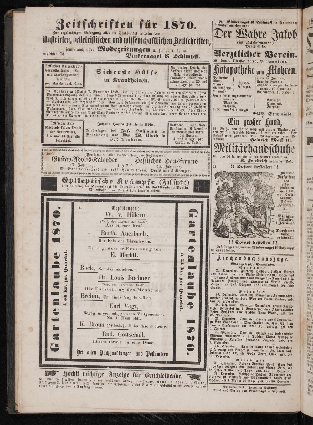 Verantw. Red.: Hermann Schimpff. Druck und Verlag van Bindernagel& Schimpff.