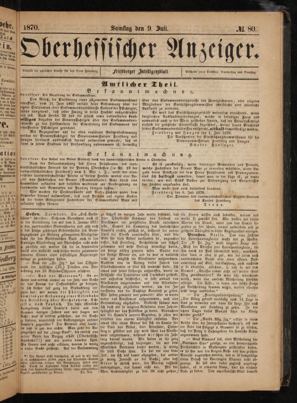 13 L.% Wir machen die Ortsvorstände und Vieh, Züchter unter dem Friedberg den 6. Juli 1870. 5