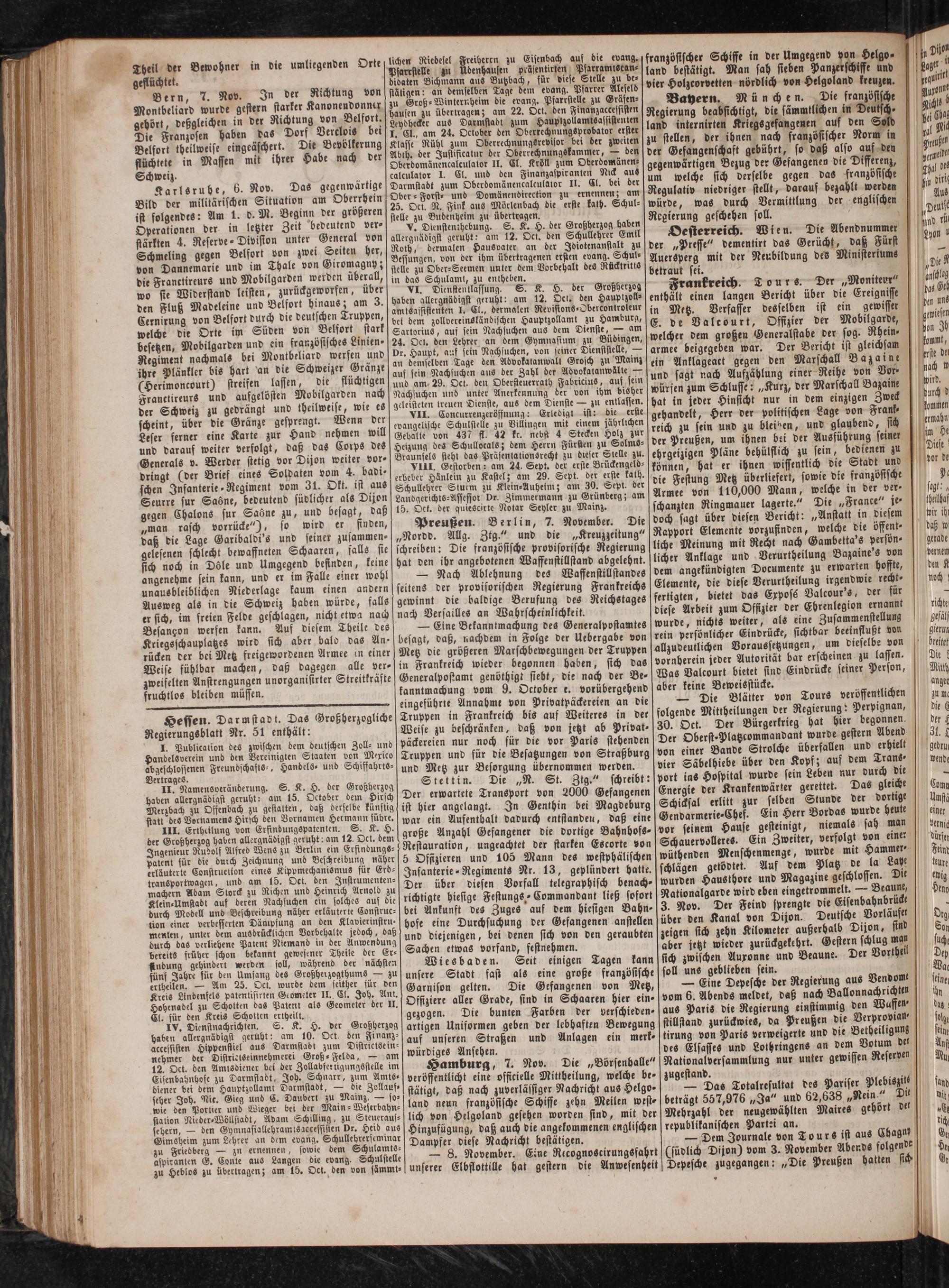 Preußen. Berlin, 7. November. Die „Nordd. Allg. Ztg.“ und die„Kreuzzeitung“ schreiben: Die französische provisorische Regierung hat den ihr angebotenen Waffenstillstand abgelehnt.