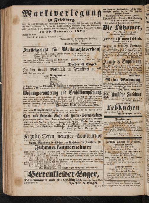 abgehalten wird. Friedberg am 9. November 1870. Großherzogliche Bürgermeisterei Friedberg J. n.