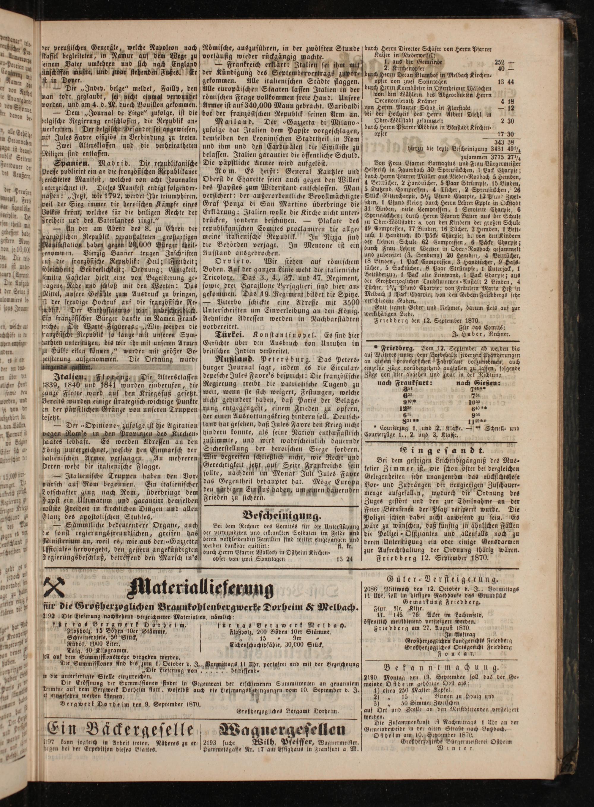 zur Aufrechthaltung der Ordnung thätig wären. Friedberg 12. September 1870.
