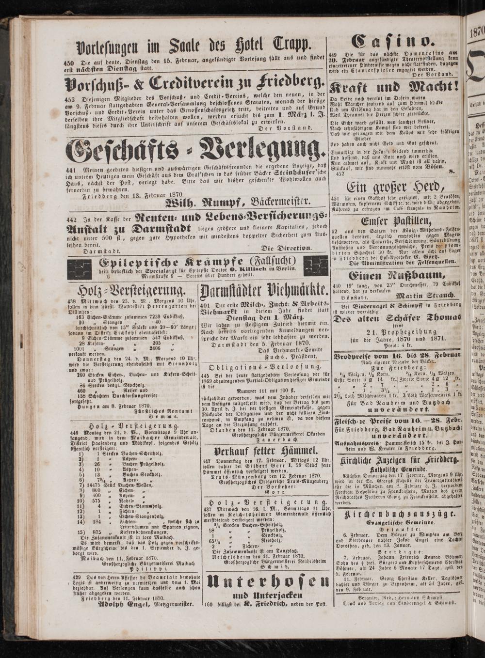 Friedberg den 13. Februar 1870.