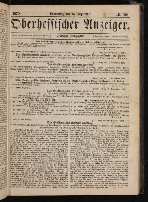 Friedberg den 14. September 1870.