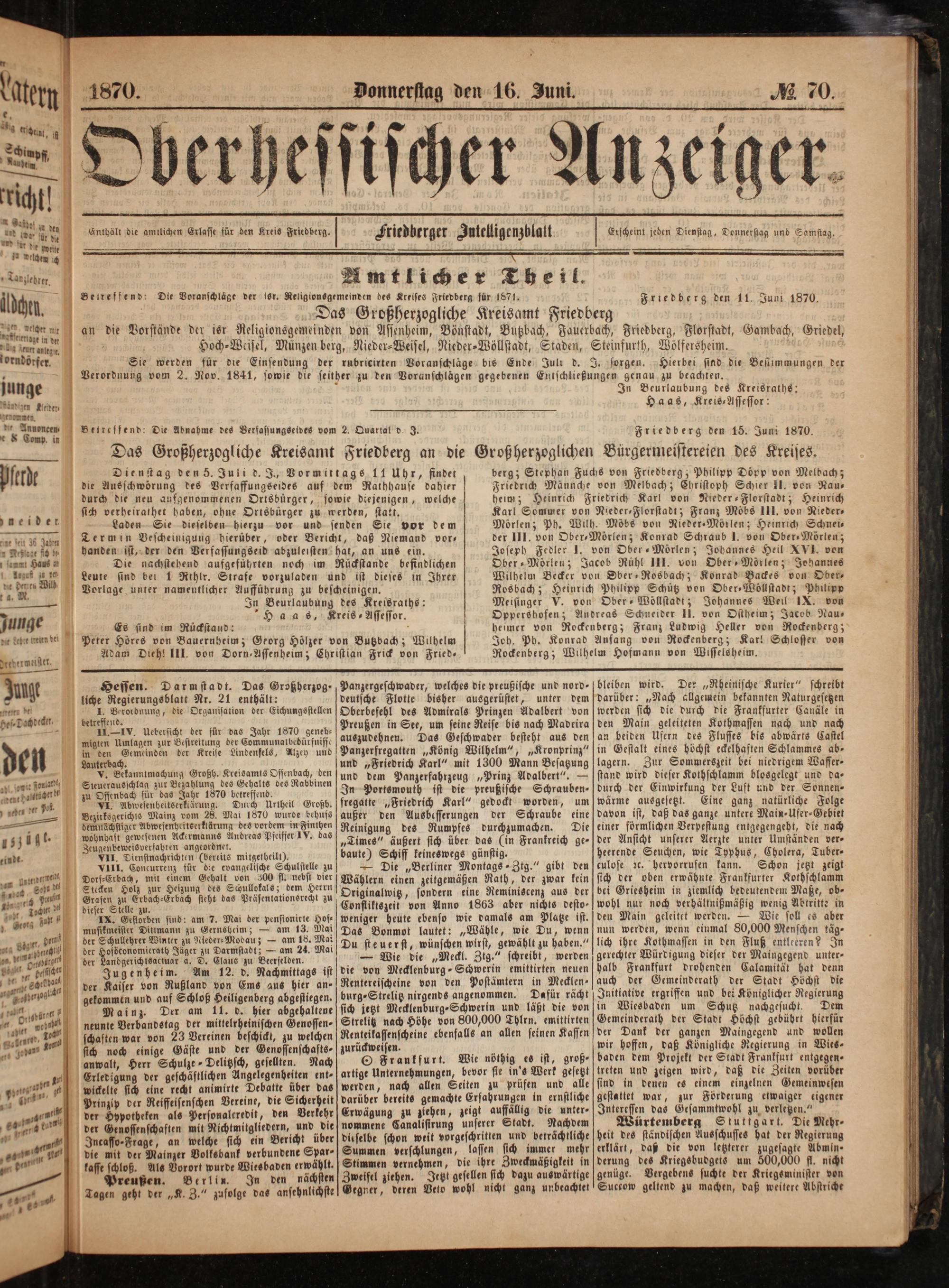 * Gen b a * 0 1 de Enthält die amtlichen Erlasse für den Kreis Friedberg. Erscheint jeden Dienstag, Donnerstag und Samstag.
