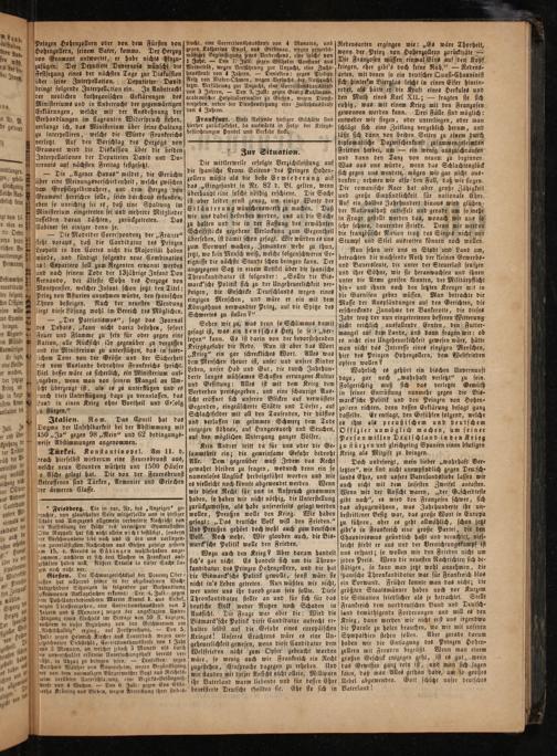 Türkei. Konstantin opel. Am 11. d. brach hierselbst wiederum eine Feuersbrunst aus, welche neun Stunden wüthete und 1500 Häuser in Asche gelegt hat. Die von der Feuersbrunst Betroffenen sind Türken, Armenier und Griechen der ärmeren Classe.