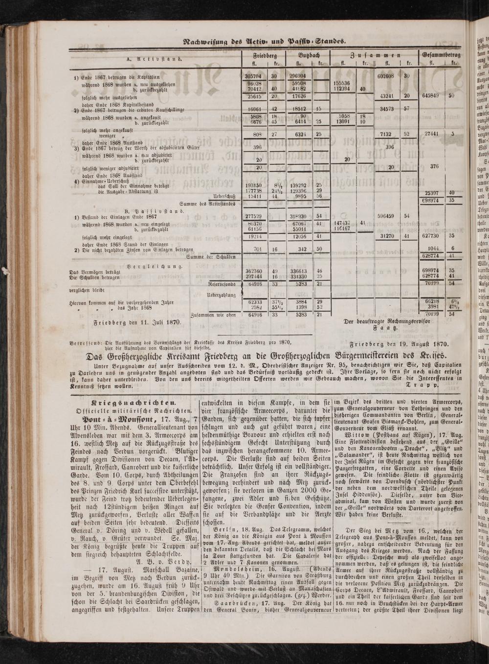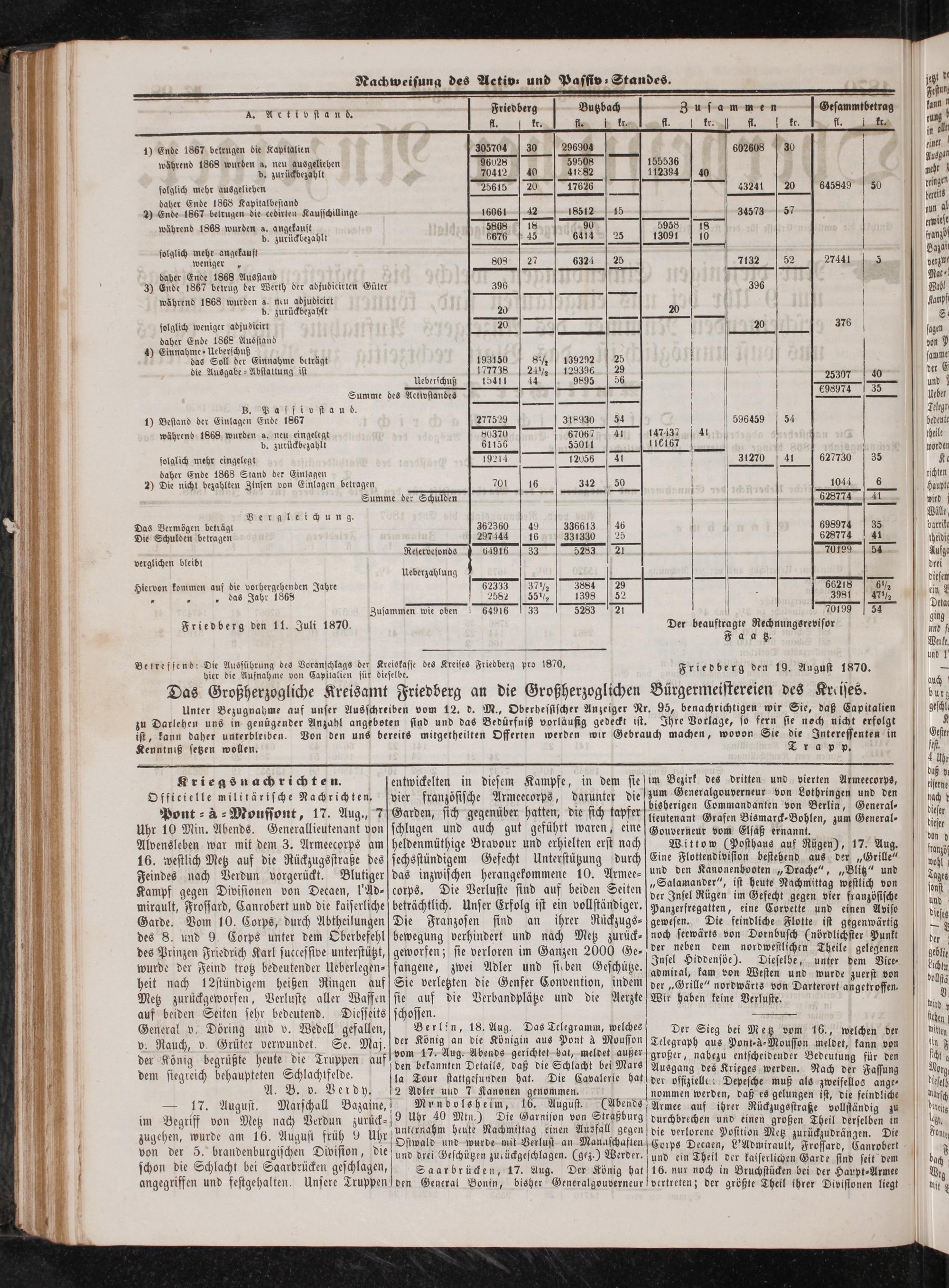 Friedberg den 19. August 1870.