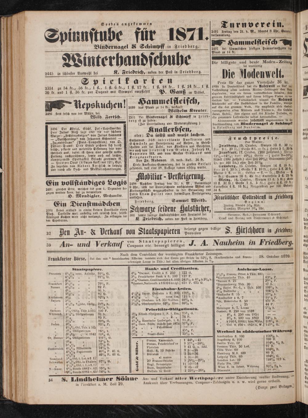 Verantw. Red.: Hermann Schimpff. Druck und Verlag von Bindernagel& Schimpf.