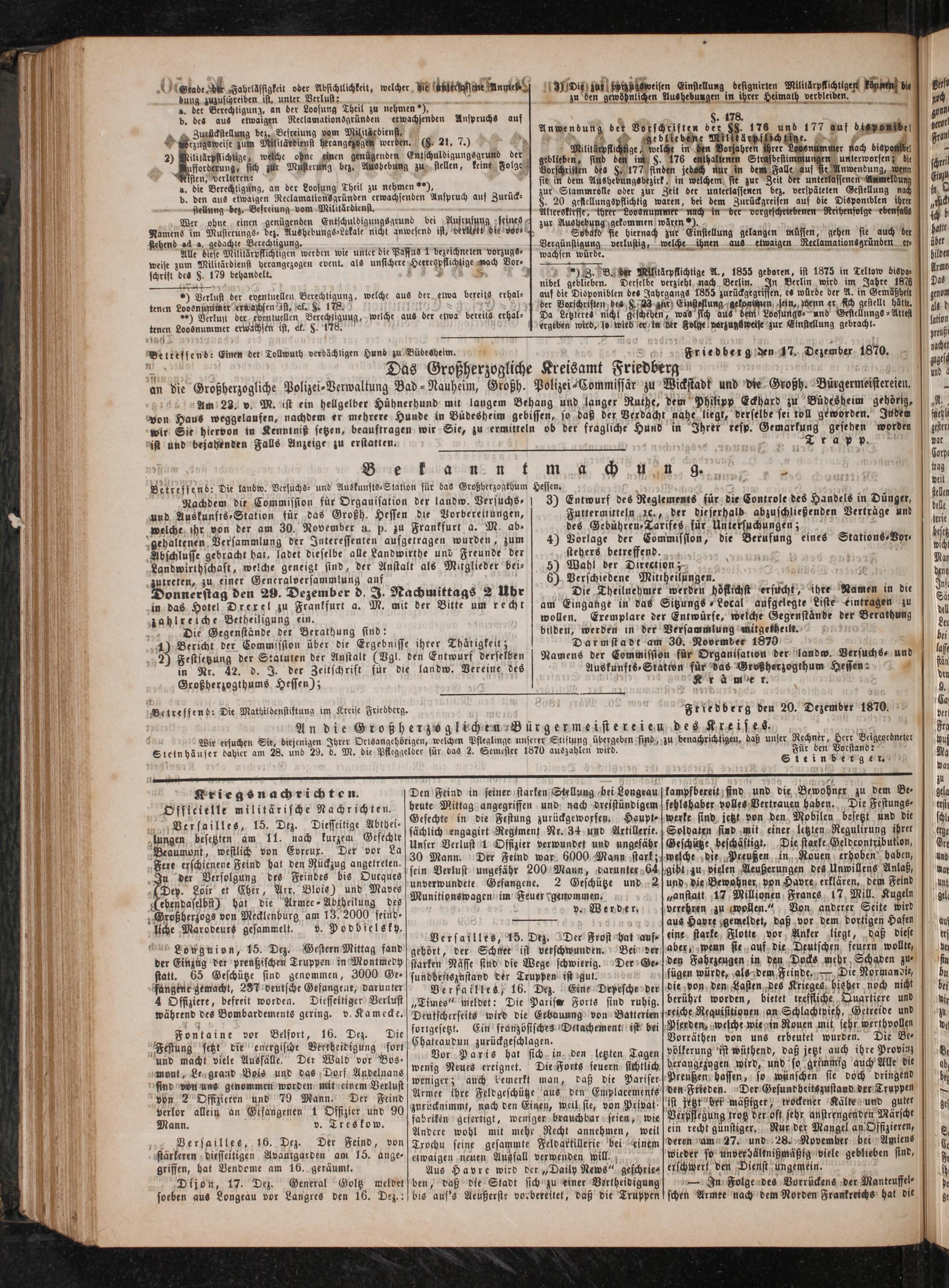 Die Theilnehmer werden hoͤslichst ersucht, ihre Namen in die am Eingange in das Sitzungs Local aufgelegte Liste eintragen zu wollen. Exemplare der Entwürfe, welche Gegenstände der Berathung bilden, werden in der Versammlung mitgetheilt. Darmstadt am 30. November 1870