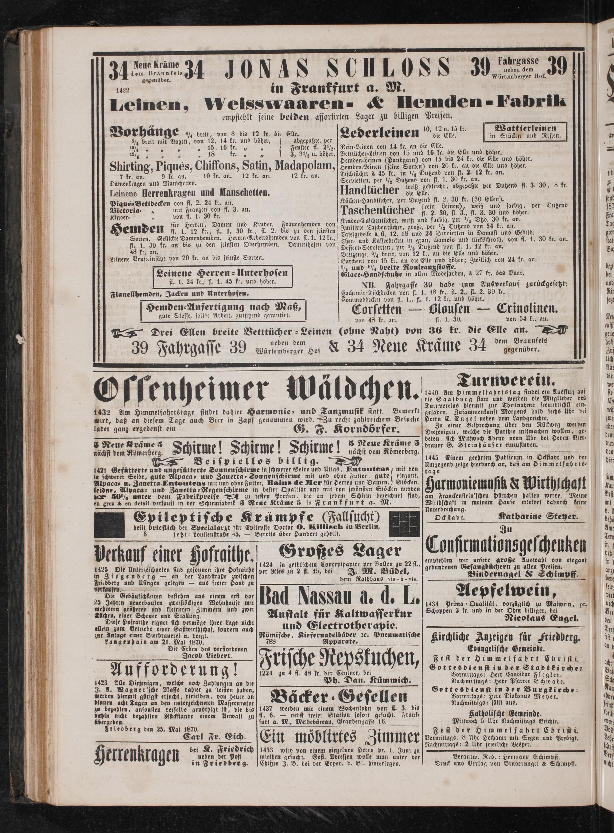 Verantw. Red.: Hermann Schimpff. Druck und Verlag von Bindernagel& Schimpff.