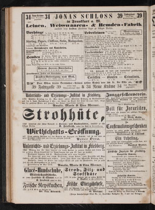 Zeit bei den Unterzeichneten zu haben. 5 n 8 18710. Amalie, Marie& Ling Werner. Clacé- Handschuhe, Stroh, Filz und Militärhandschuhe, Stoffhüte