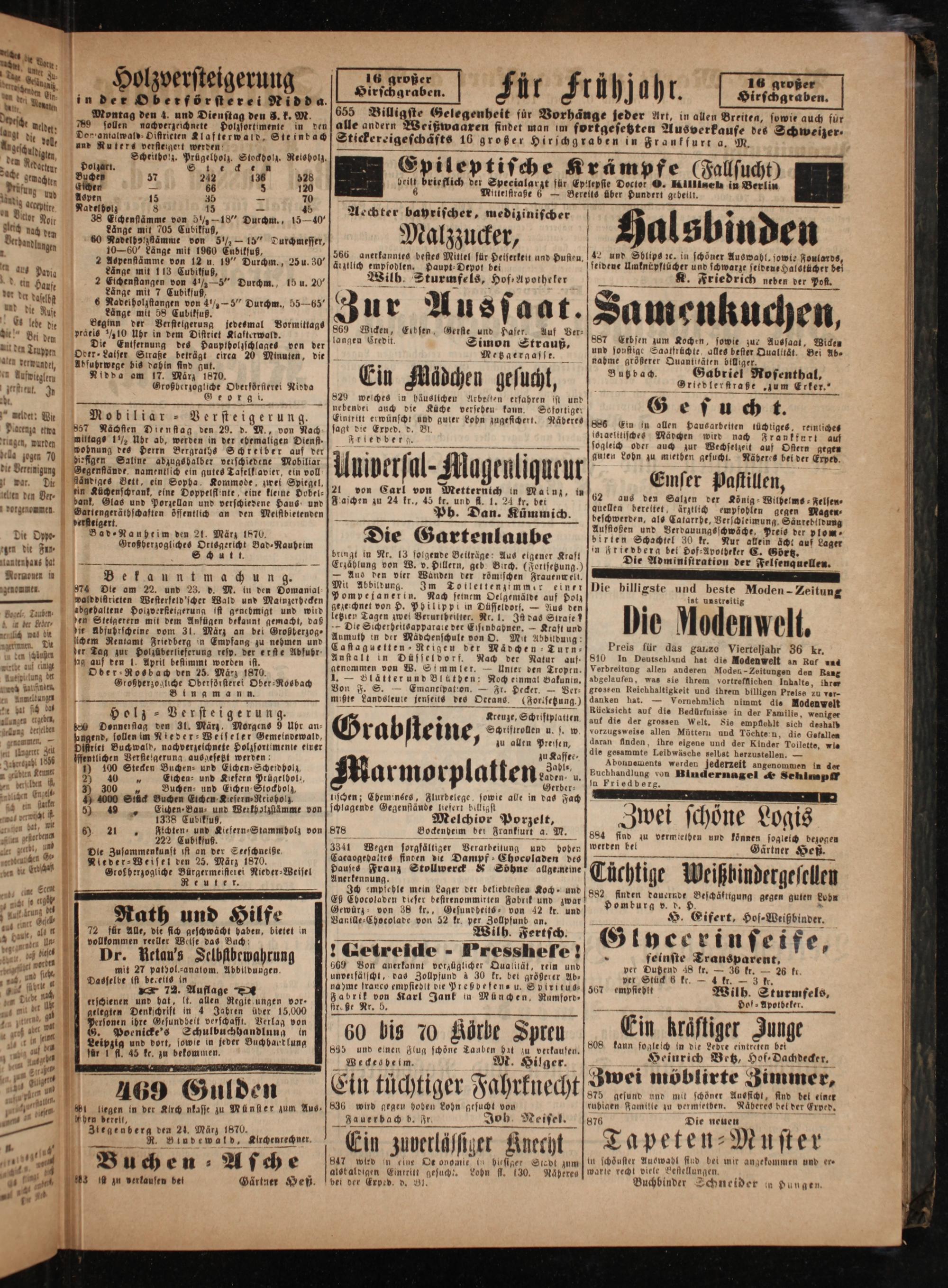 Oder⸗Rosbach den 25. März 1870. Großherzogliche Oberförsterei Ober-Rosbach Bin amann.