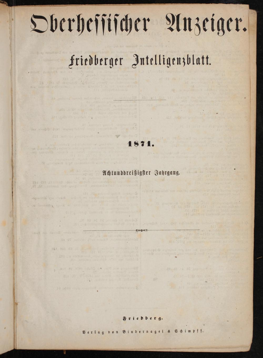 (3.1.1871) Inhaltsverzeichnis