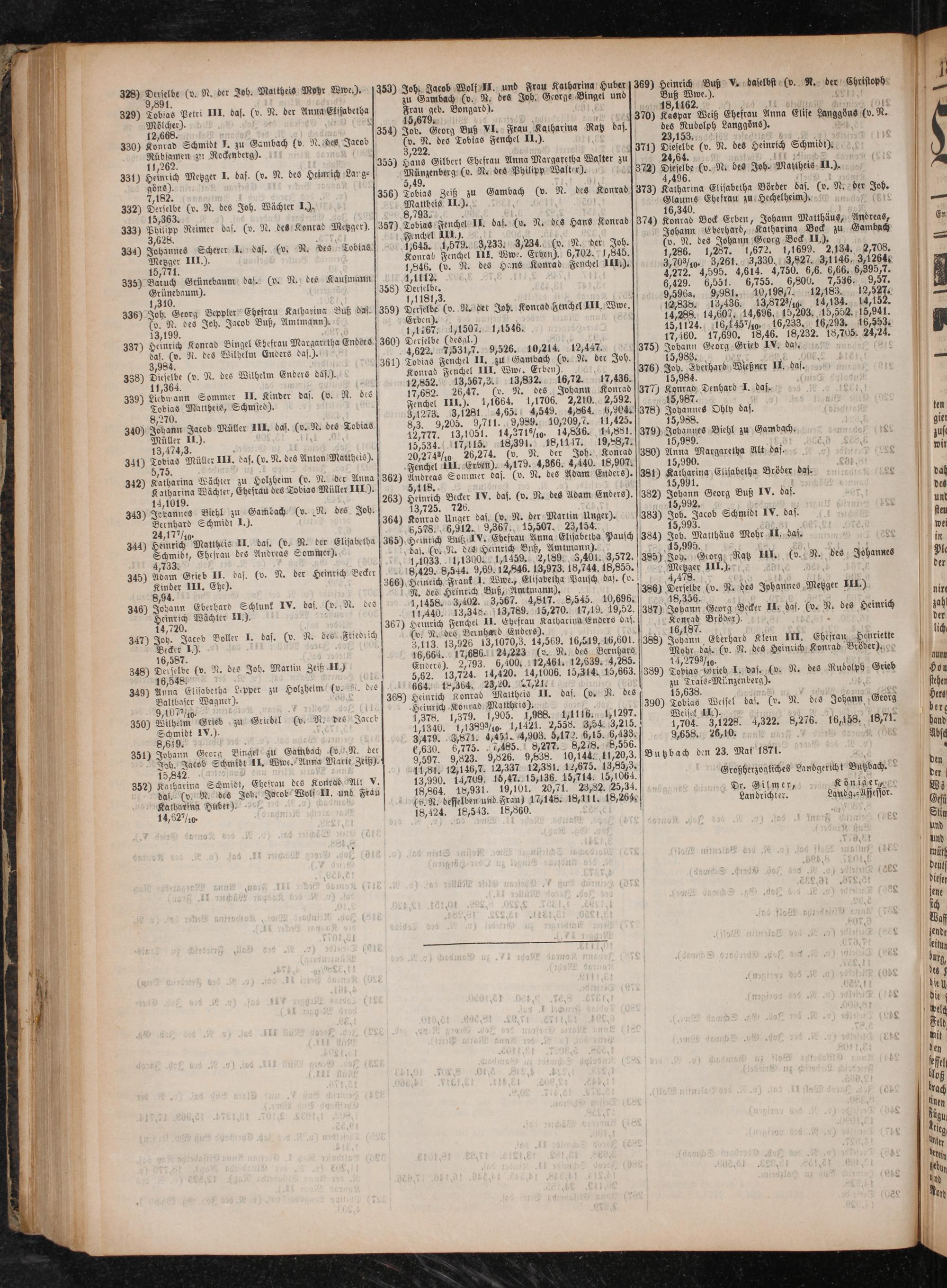 n 377) Konrad Denhard I. das. „987. 378) Johannes Ohly das. 15,988. 379) Johannes Biehl zu Gambach. 15,989. 380) Anna Margaretha Alt das. 15,990