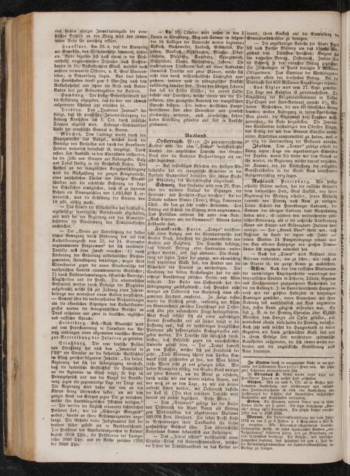 Schweiz. Aus Lausanne wird vom 29. Sept. über den weiteren Verlauf der Sitzungen der Friedens- und Freiheits-Liga berichtet: An der Debatte nahmen Simon(Trier), Gögg, Lemonnier Theil. Es kam zu sehr ernsten Auftritten. Der Antrag auf Schluß der Sitzung wird angenommen. Das Publikum entfernte sich unter dem Rufe: „Nach Cayenne mit der Commune!“ Abends findet Festbanket statt.