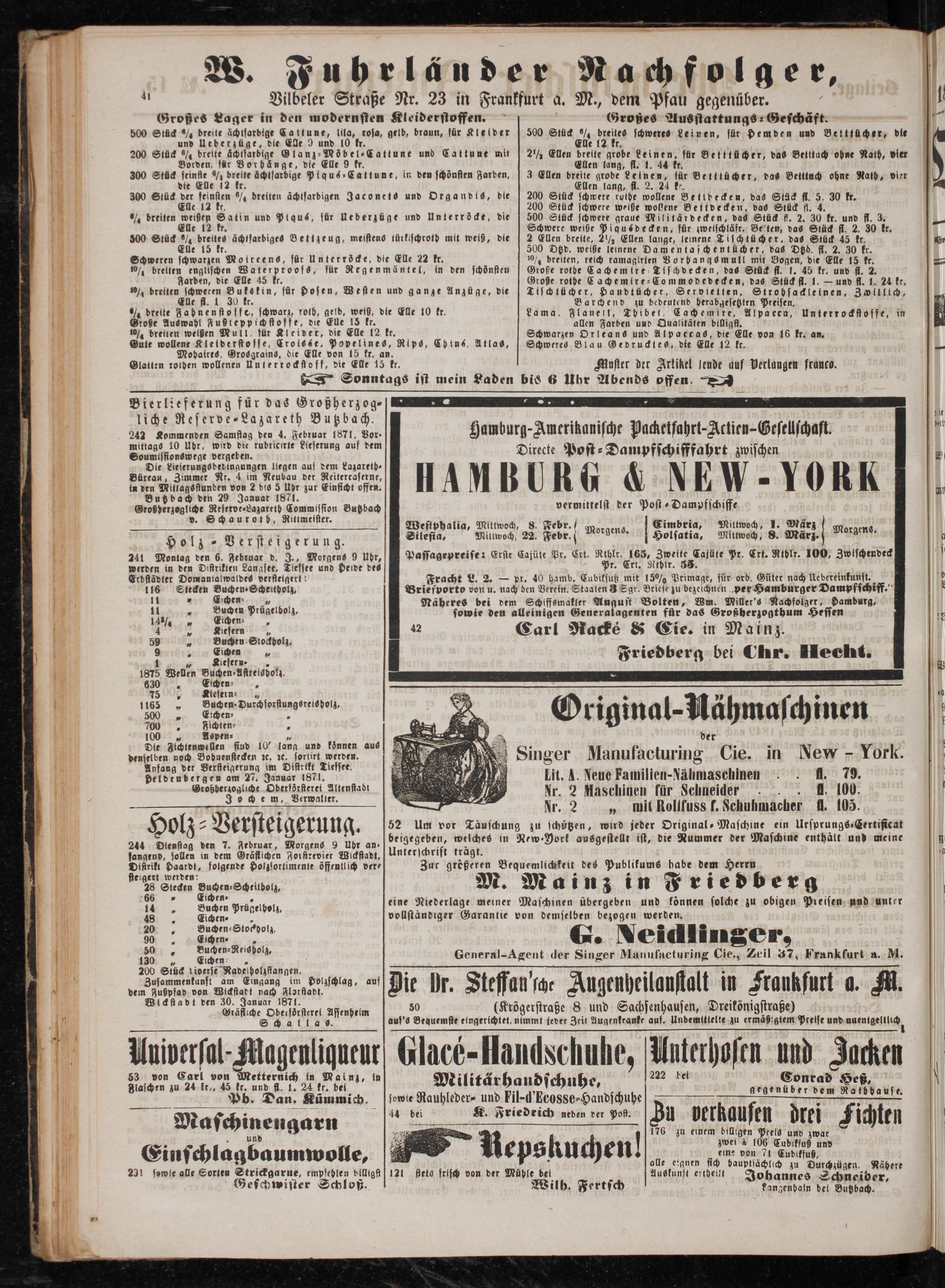 Näheres bei dem Schiffsmakler August Bolten, Wm. Miller's Nachfolger, Hamburg, sowie den alleinigen Generalagenten für das Großherzogthum Hessen