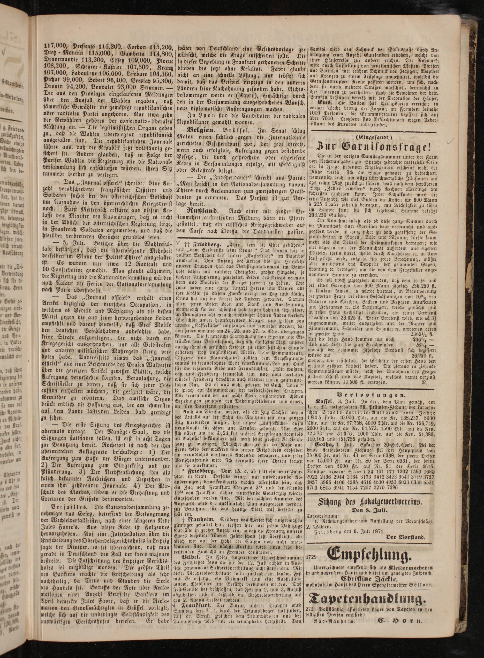 1. Rechnungsabhör und Aufstellung der Voranschläge, 2. Wablen. N Friedberg den 6. Juli 1871. Der Vorstand.