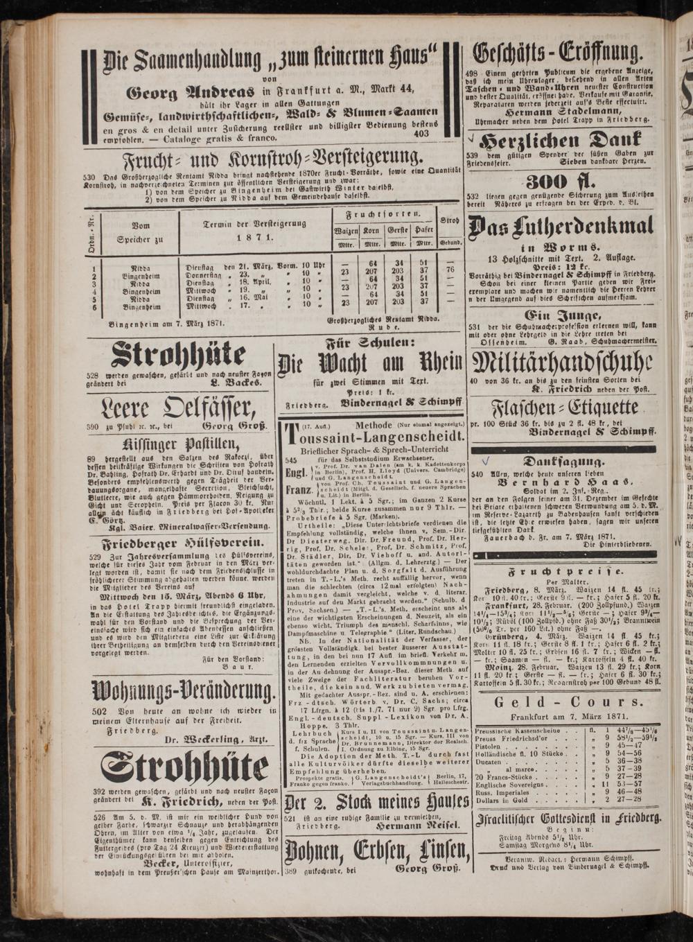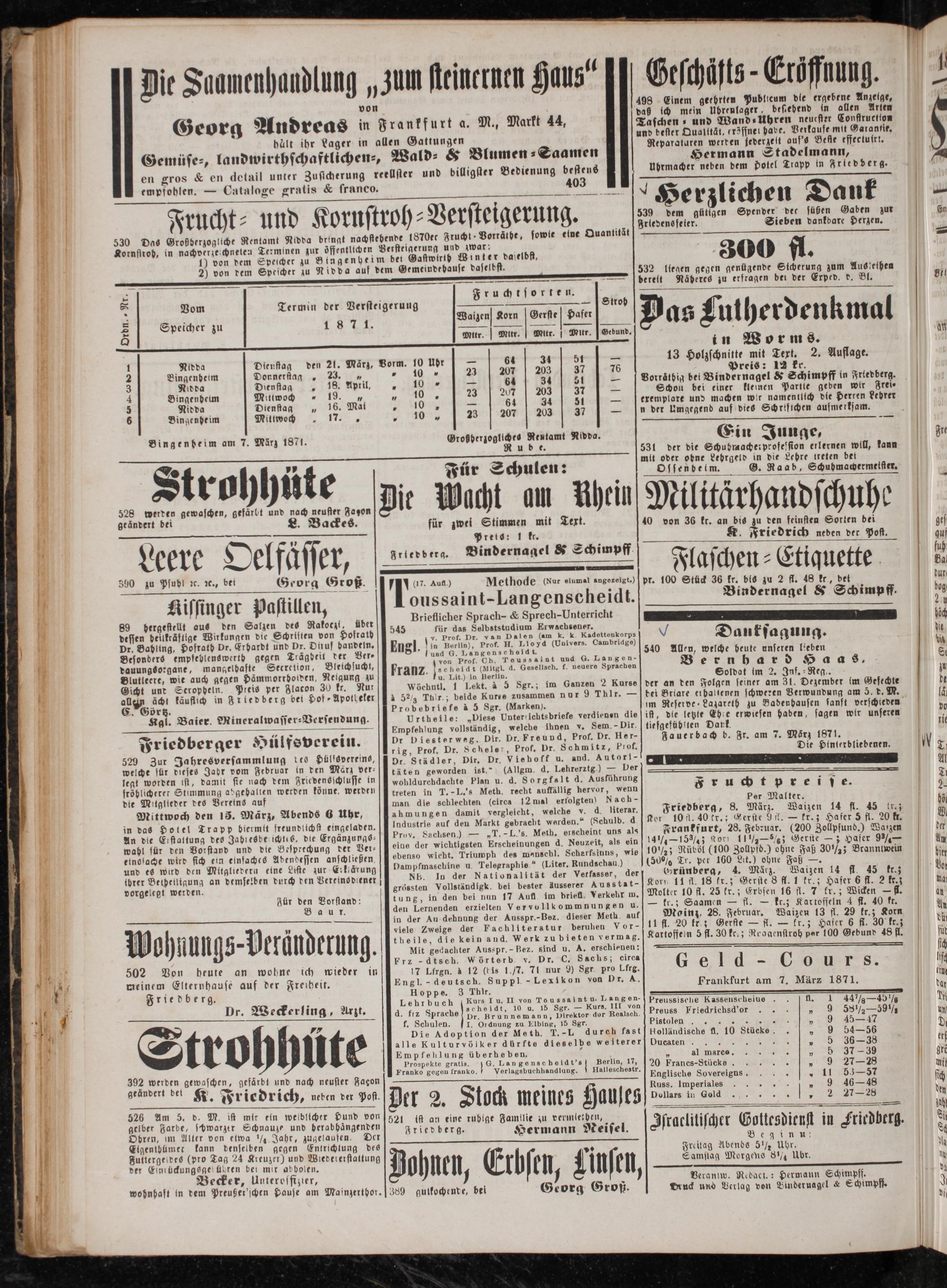 F ruchtpreise. 5 Per Malter. Friedberg, 8. März. Waizen 14 fl. 45 lr.;