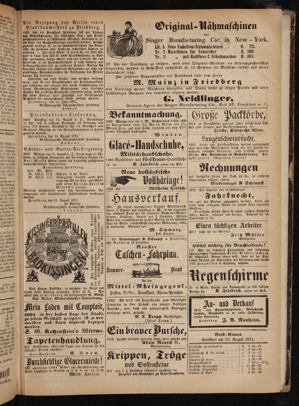 General-Agent der Singer Manufacturing Cie., Zeil 37, Frankfurt a. B.
