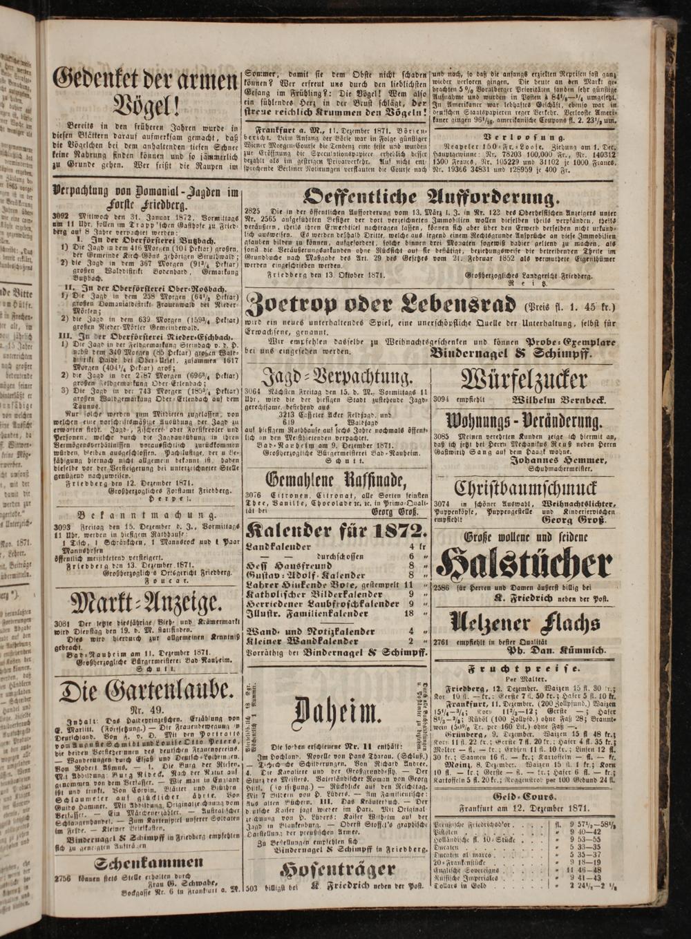 1 Tisch, 1 Schränkchen, 1 Mannsrkock und 1 Paar Manns bosen öffentlich meisthtetend versteigert. zrledberg den 13. Dtzember. 1871. Großherzoglich s Ortsgericht Friedberg. Fouc ar.