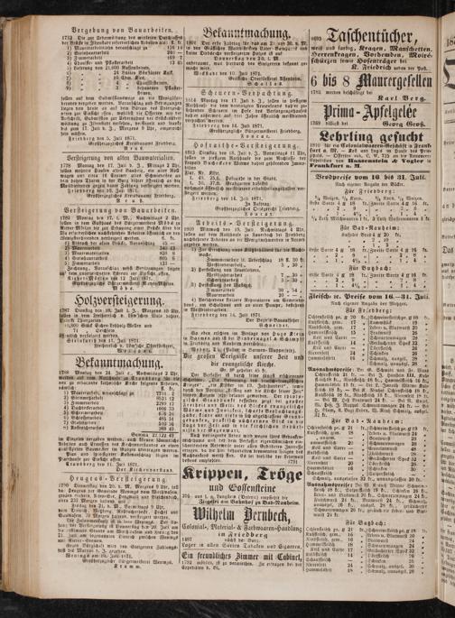 Friedberg den 14. Jult 1871. Großherzogliche Bürgermeisterei Friedberg. Jo ne d r.