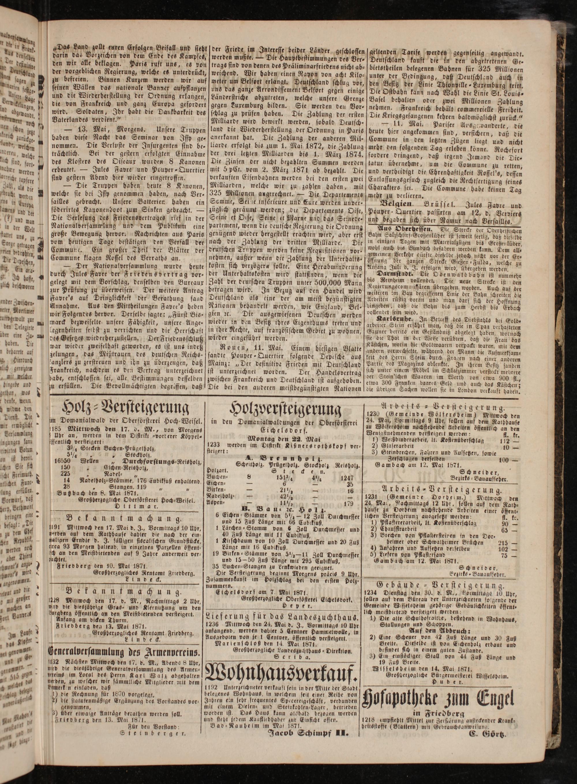 genommen, ) Über etwaige Anträge berathen werden soll. Friedberg den 13. Mai 1871. Für den Vorstand: