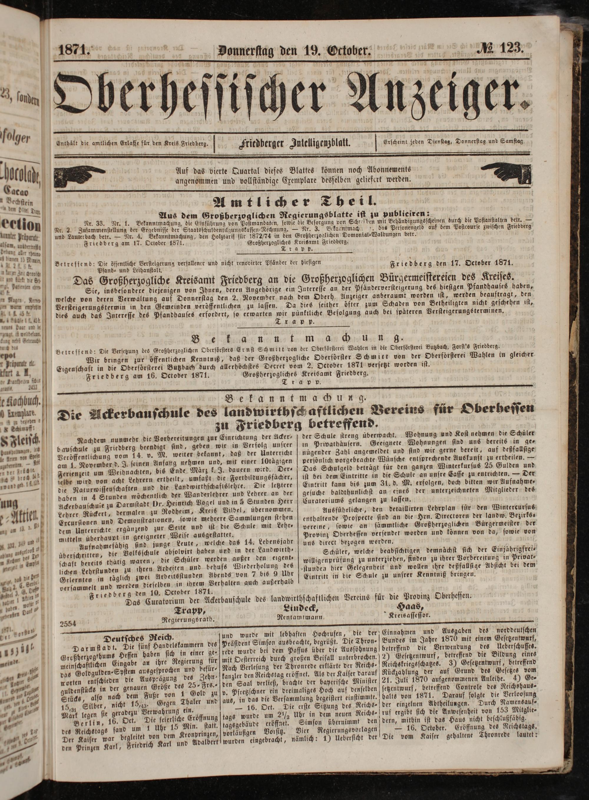 Friedberg am 16. October 1871. Großherzogliches Kreisamt Friedberg. T reep.