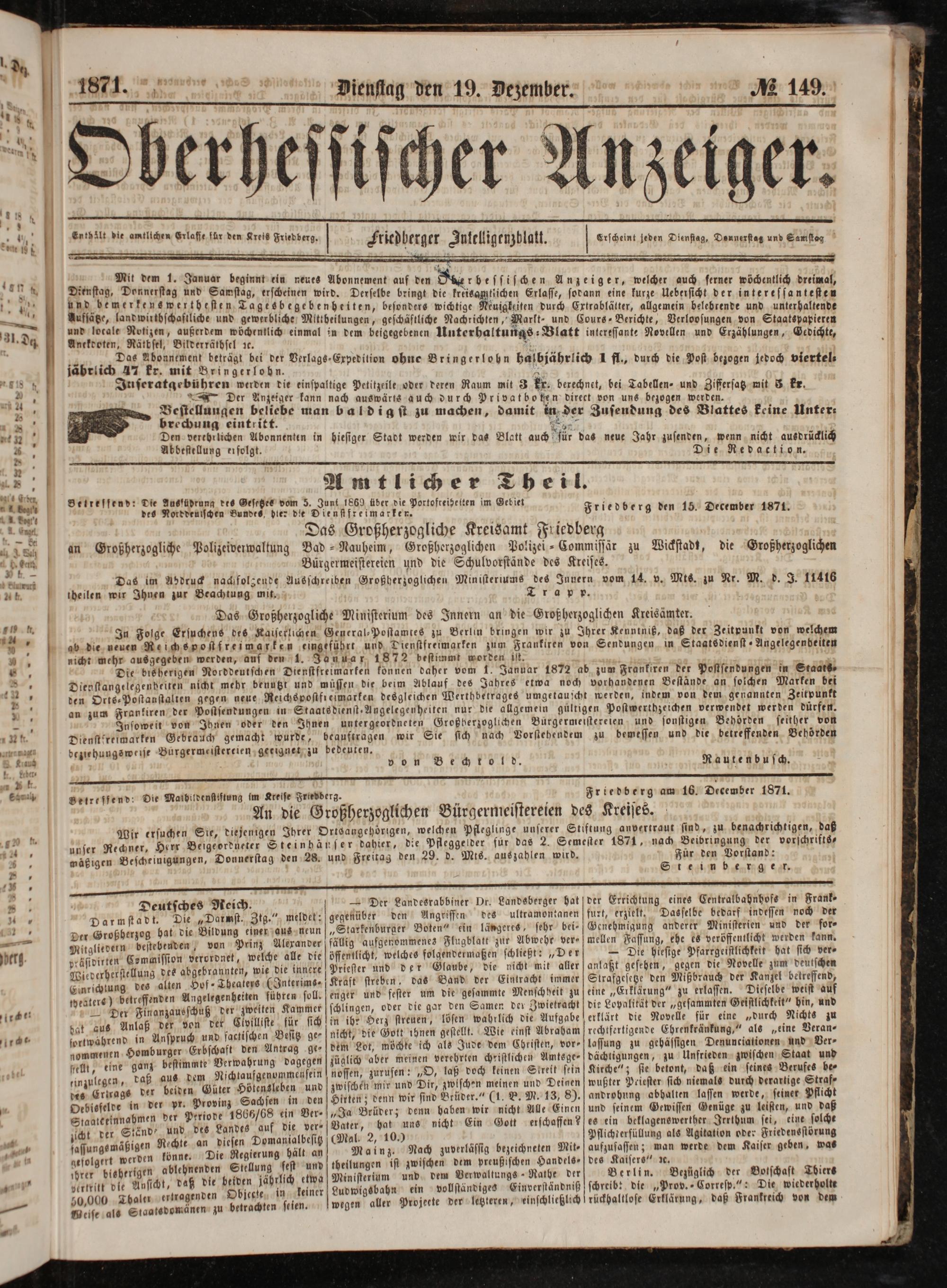 Enthält die amtlichen Erlasse für den Kreis Friedberg.