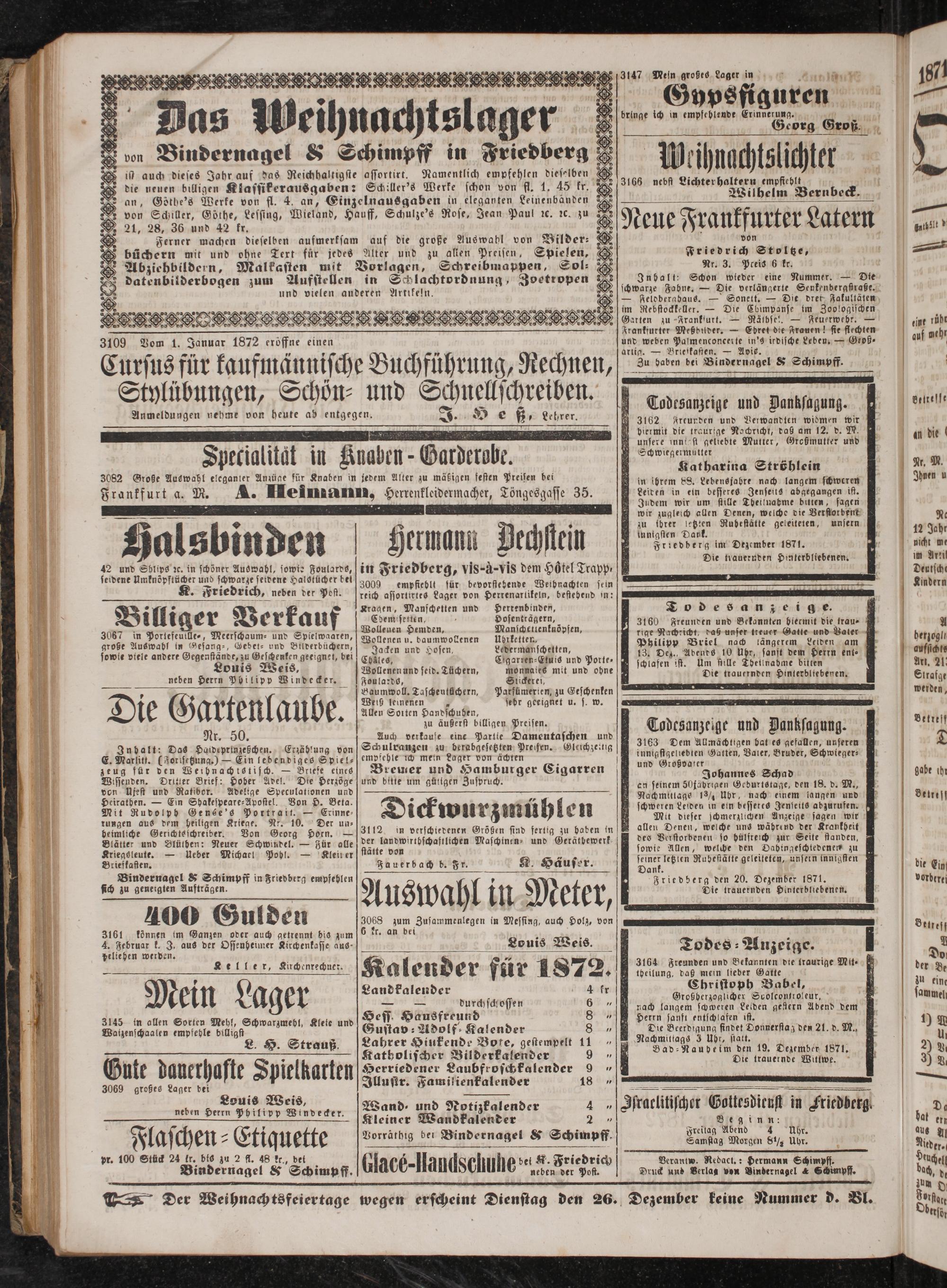 wegen erscheint Dienstag den 26. Dezember keine Nummer d. Bl.