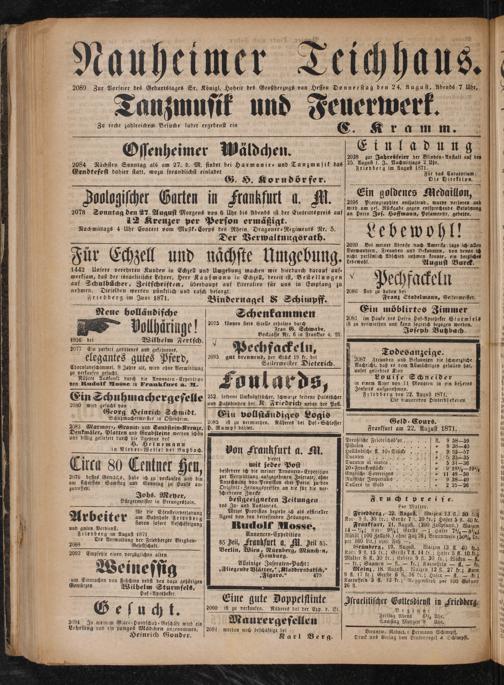 Nähere Auskunft durch die Annoncen ⸗Expeditton von Rudolf Mosse in Frankfurt a. M.
