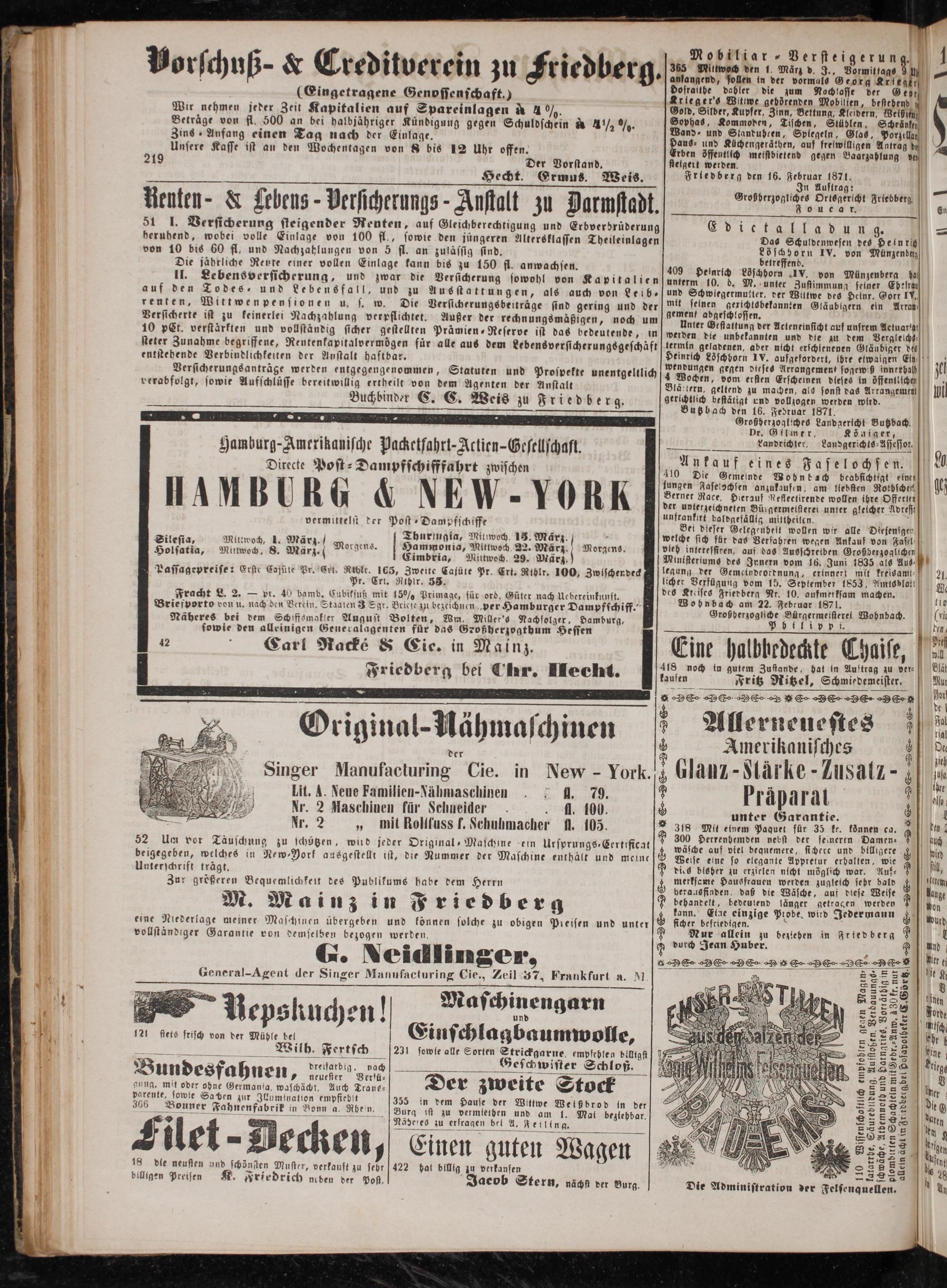 fleigert werden. Friedberg den 16. Februar 1871. In Auflrag: Großherzogliches Ortsgericht Friedberg. Foucar.