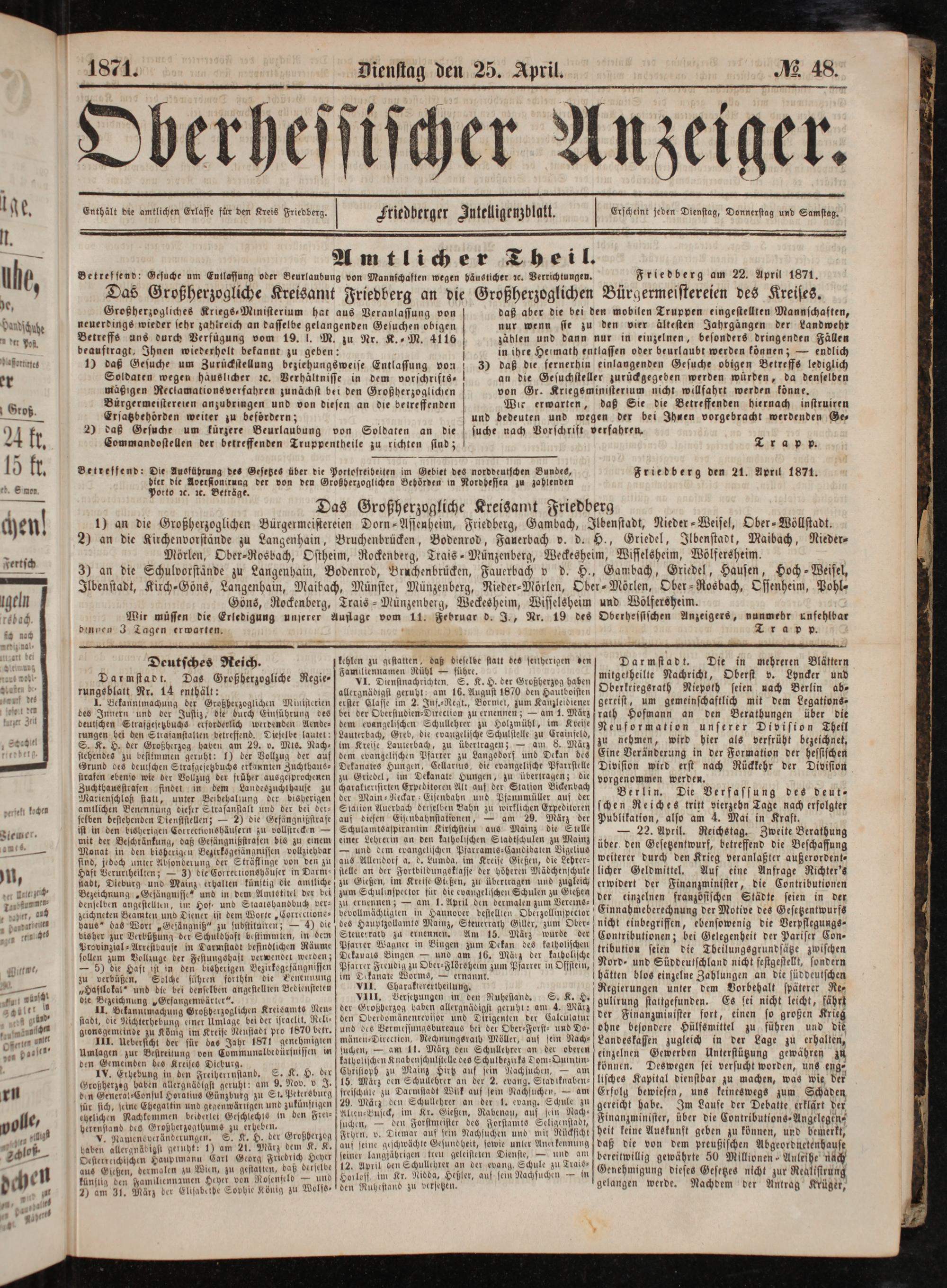 Friedberg den 21. April 1871.
