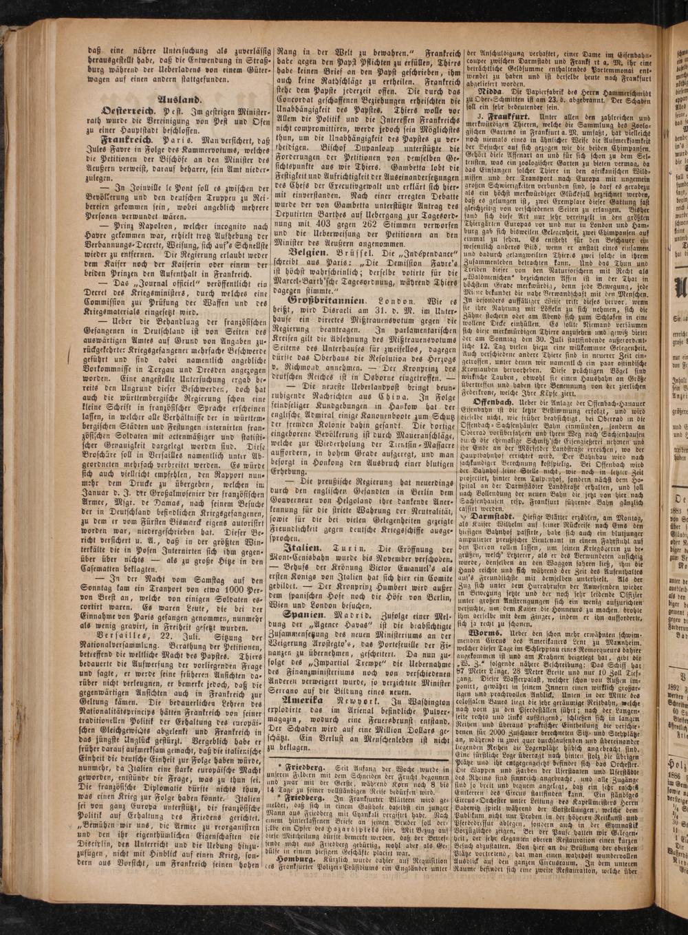 Frankreich. Paris. Man versichert, daß Jules Favre in Folge des Kammervotums, welches die Petitionen der Bischöfe an den Minister des Aeußern verweist, darauf beharre, sein Amt nieder— zulegen.