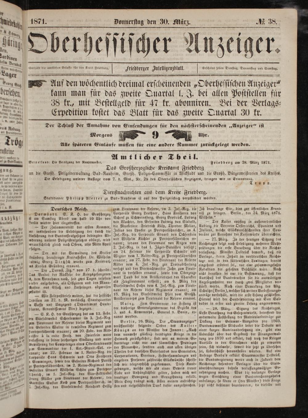 denen, Auf den wöchentlich dreimal erscheinenden„Oberhessischen Anzeiger“